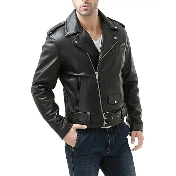 Full Sleeve PU Leather Jacket With Chain & Belt