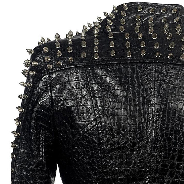 Women PU Leather Studded Spike Crocodile Skin Jacket